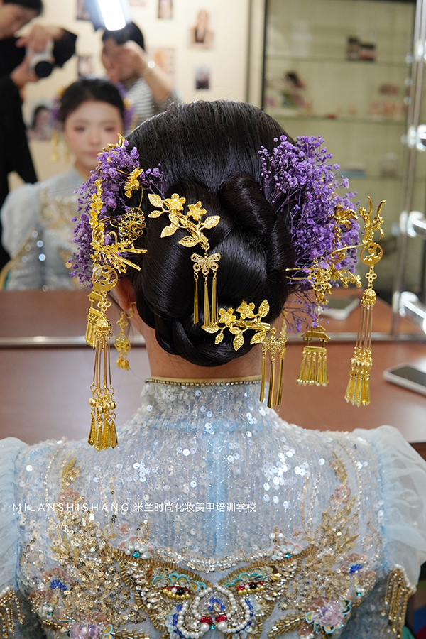 2026-03-18 一袭蓝秀禾,清雅又端庄。 一袭蓝秀禾,清雅又端庄。低饱和妆面干净通透,眉眼温婉柔和,不抢色、不浮夸,衬得肤色白皙透亮,把中式温婉与高级清冷感完美融合。#安阳米兰时尚化妆美甲培训学校